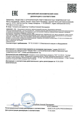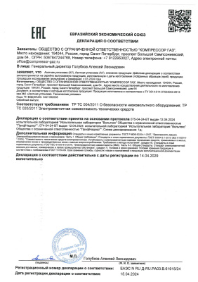 Блок воздушной компрессорной станции (БВКС) сертификат СМК+ ИНТЕРГАЗСЕРТ